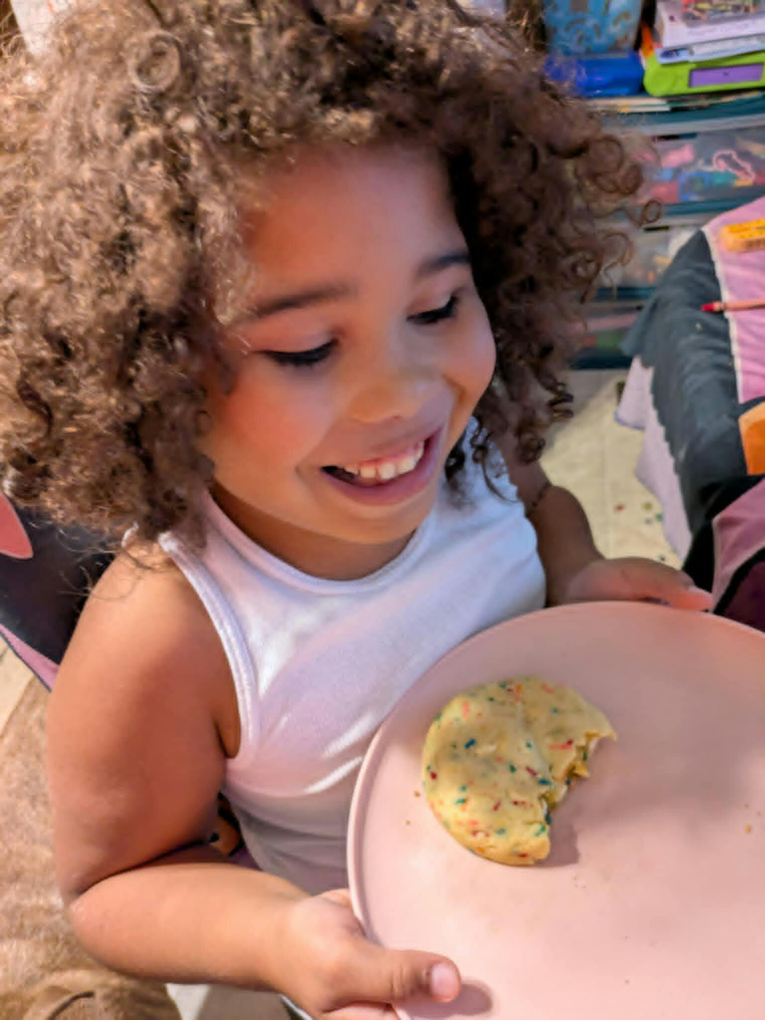 This cookie is definitely a treat for anyone. It’s like a sprinkle cookie but much more fresh and you can instantly tell they are homemade. I split this with my husband and we both had plenty. Thank you Samantha for your baking skills. I can’t wait to order again. 😋👍 👍👍👍👍