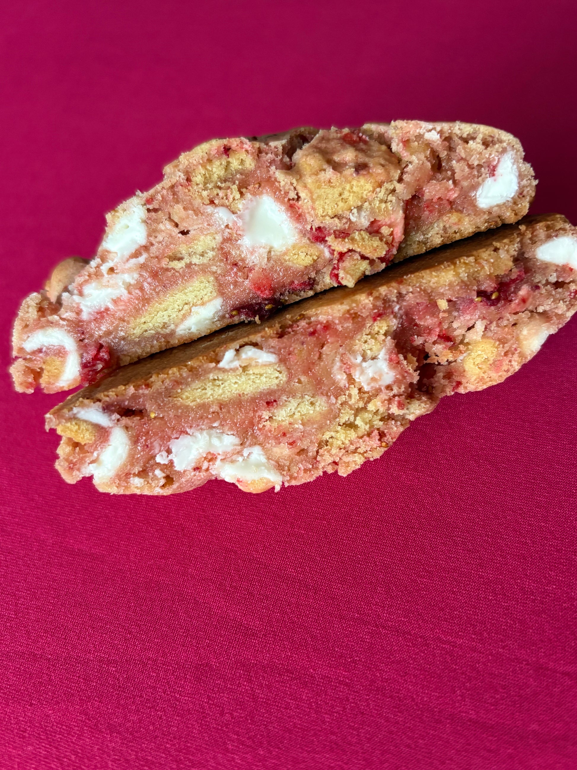 Sweet, chewy, and loaded with strawberry flavor, this cookie brings all the nostalgia of strawberry shortcake in one handheld bite.